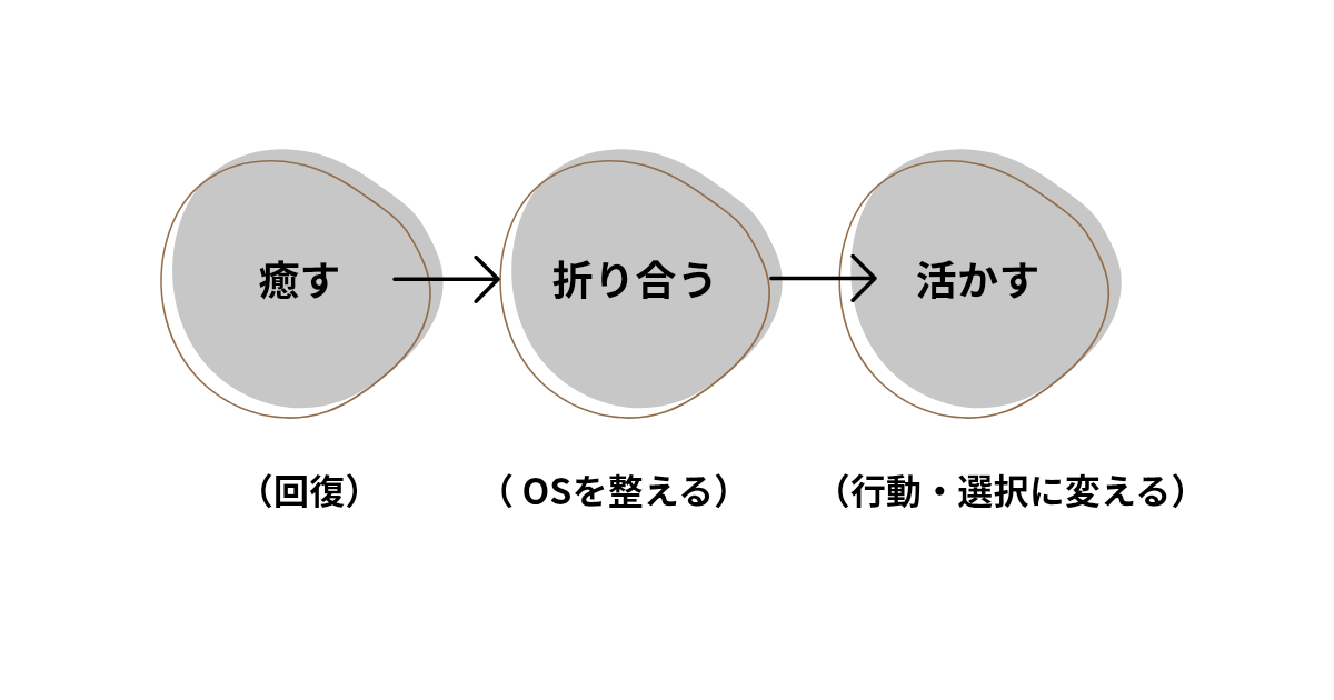 ※変化の速度は個人差がありますが、「小さく・具体的に・続ける」ことで、再生→修復→創造へと自然に進みます。